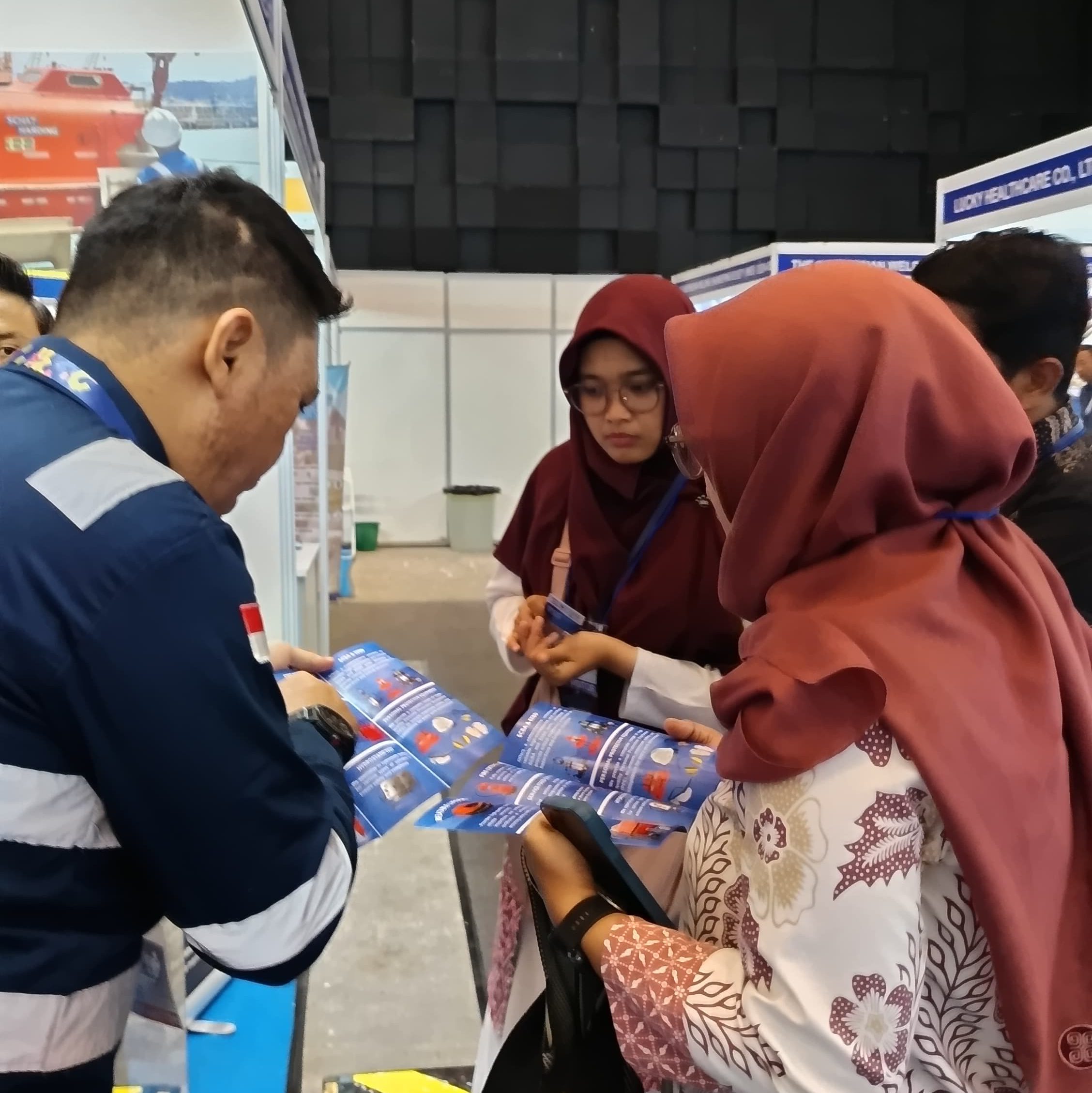 The booth quickly became one of the most engaging spots at the exhibition. Visitors from various backgrounds, including representatives from shipyards, shipping companies, and safety professionals, gathered to explore the company’s solutions and engage in in-depth discussions with the PT. LSA team. The booth presented a lively and interactive atmosphere, with visitors not only listening to technical explanations but also observing safety equipment displays, reviewing technical brochures, and watching video demonstrations of lifeboats and davit systems.
